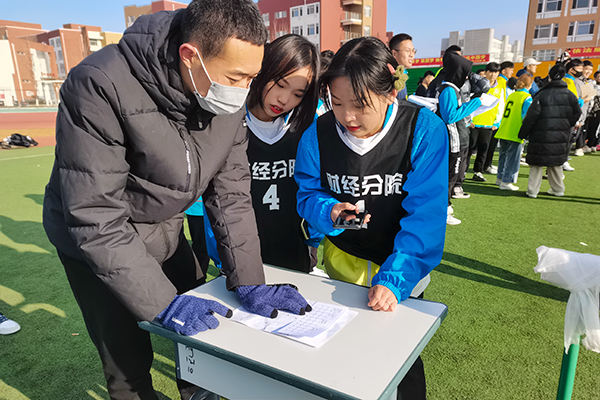 运动员长跑进行中,在足球场内同步开展了百米定向活动。运动员在进入迷宫场地后,可在场地规划线路内自由行动,在迷宫定向场内设有18个定向任务点,进行打卡完成比赛。比赛中,选手们不畏严寒,表现出良好的综合素质,比赛结束后,大家仍意犹未尽,纷纷表示这样的比赛既强身健体,又娱乐身心,在紧张的学习之余,缓解了学习的压力,促进了同学间的交流,培养团结友爱的精神,还培养了识图看图的能力。