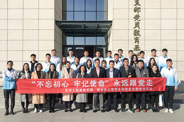 为扎实开展“不忘初心、牢记使命”主题教育,深入贯彻落实习近平新时代中国特色社会主义思想,运用红色资源开展革命传统教育,引导党员同志铭记党的历史、激发为民初心。11月1日,化学工程系党支部和综合办公室党支部联合开展“铭记党的历史、永葆党员本色”主题党日活动。