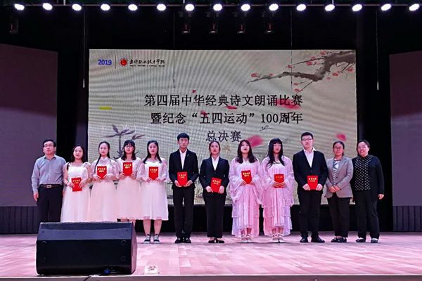 5月21日13:30,由学院基础部、团委、教务处、学生处共同举办的“青春诵经典 歌颂新时代”英国正版365官方网站第四届中华经典诗文朗诵比赛暨纪念五四运动100周年总决赛在文化中心三楼演播厅举行。学院副院长勾殿红、教务处处长王新、学生处处长邓红伟、三部党支部书记王泽喜、基础部主任李朝阳、师范教育分院副书记王中宇、旅游管理系副书记刘微微、基础部副主任宿彦莉、基础部办公室主任苏建华及各分院系师生代表观看了比赛。