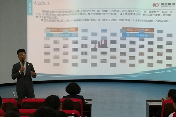 上午在博远楼一楼报告厅,包括盘锦禹王防水建材集团有限公司在内的6家招聘单位面向实习生进行面试前的企业招聘宣讲,建筑工程分院院长郑敏丽、党支部书记张长江、副院长于德国、部分教师和辅导员老师以及全体2016级实习生参加本次招聘宣讲会。宣讲会由于德国副院长主持。